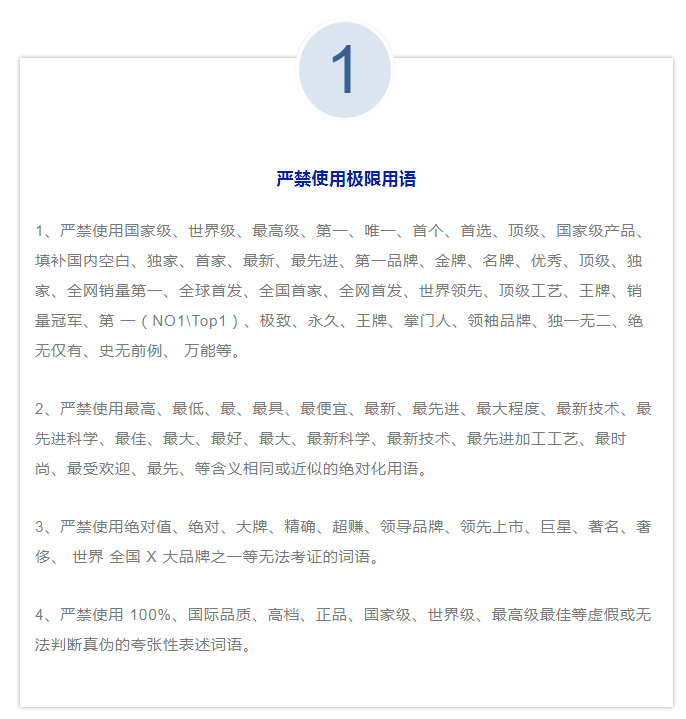我們在制作網(wǎng)站、小程序的商品標題、頭圖、詳情頁、推文等商品信息的時候,除了制造賣點吸引消費者外,還需要注意避開一些廣告法禁止的宣傳用語,避免中招。